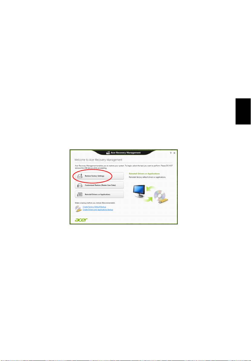 Megjegyzés: A Acer Recovery Management csak előre telepített