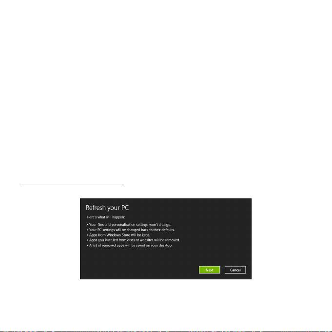 重新整理電腦將會嘗試保留您的檔案 ( 使用者資料 ),但會重新安裝所