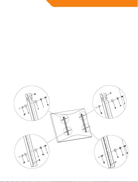 помощью болтов, используя нужную стопорную шайбу (l,m,n,o)