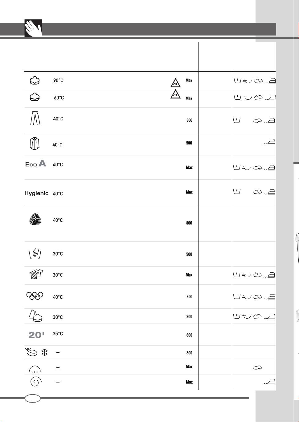 Ardo TLN126L: TABUĽKA PROGRAMOV