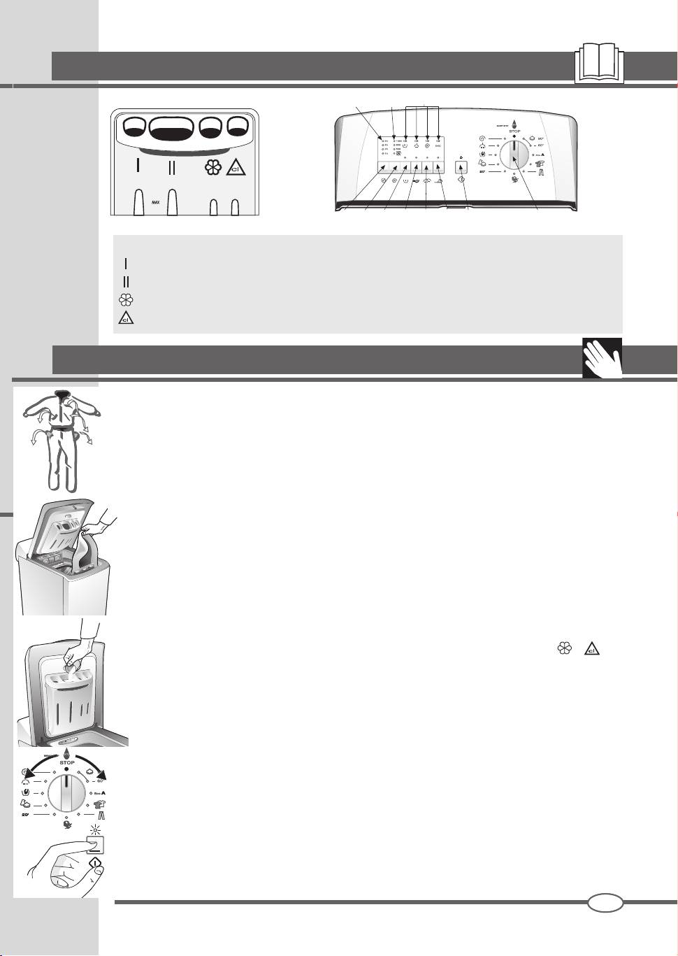 7. Выбрать программу стирки, подходящую для типологии ткани, с помощью рукоятки I, следо-
