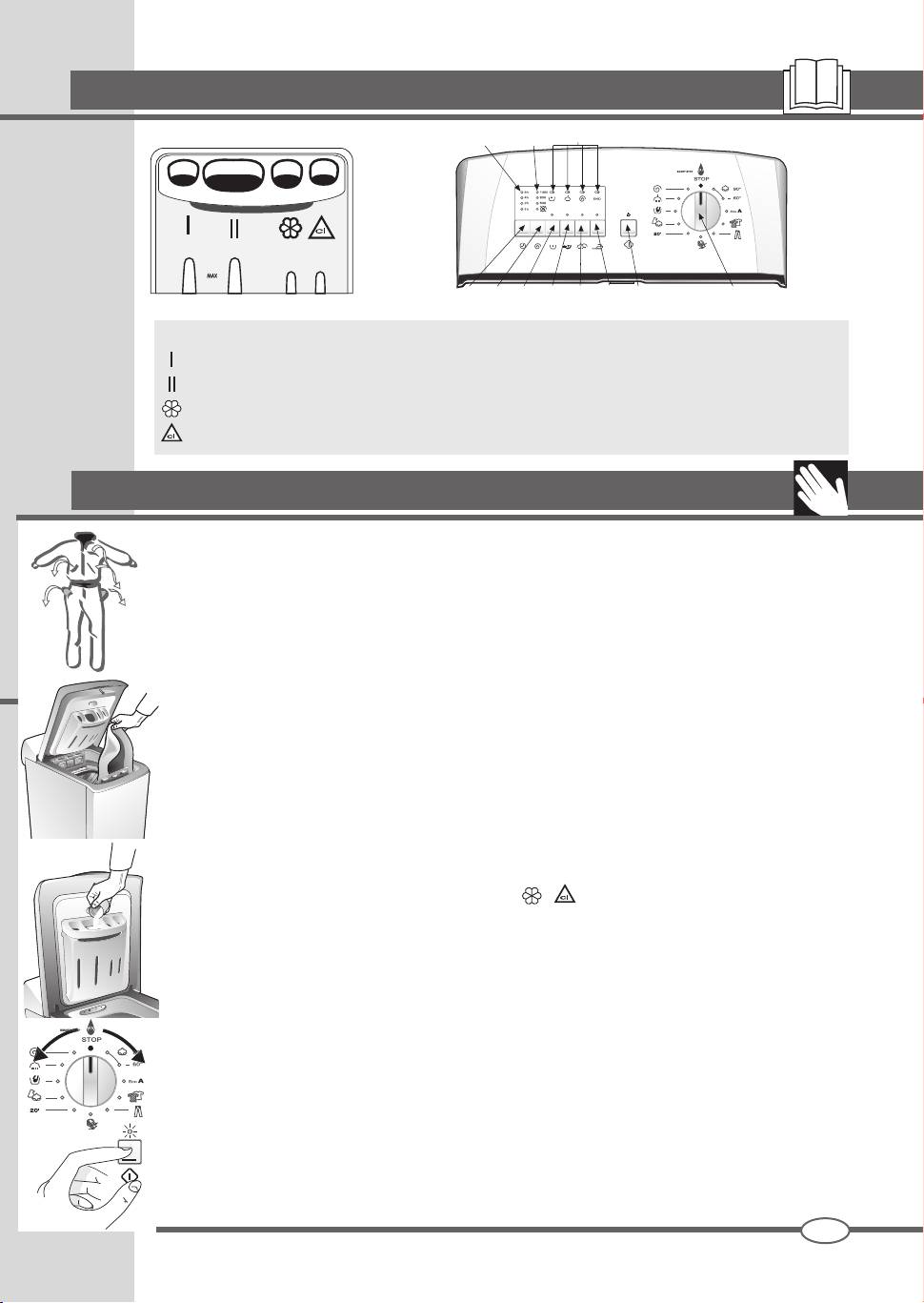 6. Umieścić odpowiednią ilość środka piorącego w specjalnym zbiorniczku II. Uaktywniając opcję
