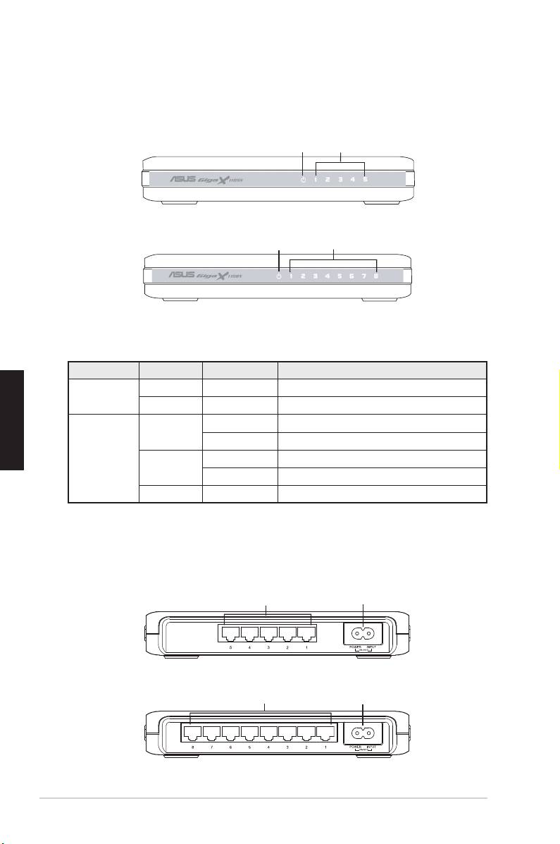 Il pannello frontale di GigaX1105N e GigaX1108N include degli indicatori LED
