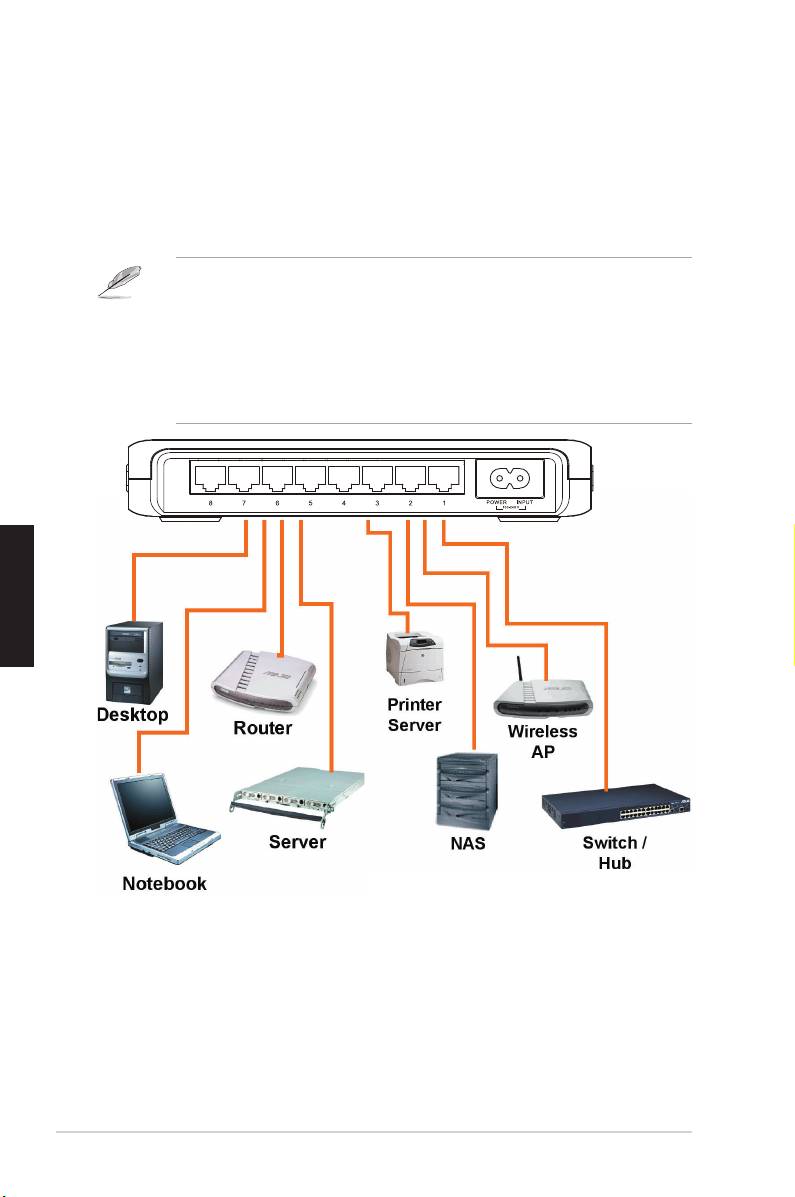 • Per collegare altri dispositivi di rete come bridge, commutatori, hub