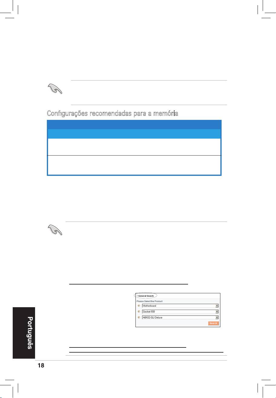 Congurações recomendadas para a memória
