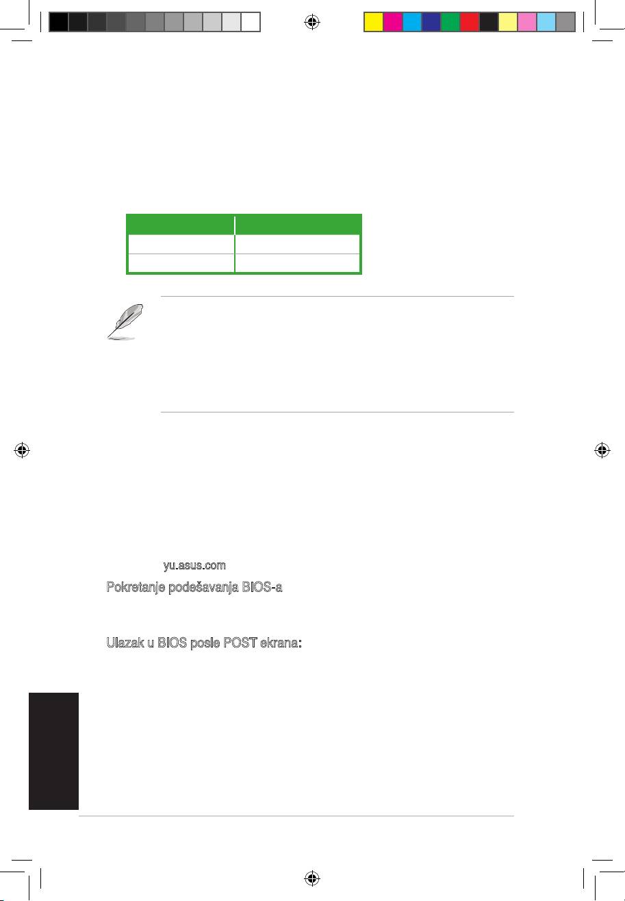 Pritisnite <Delete> taster tokom Power-On Self Test (POST) ekrana. Ukoliko ne