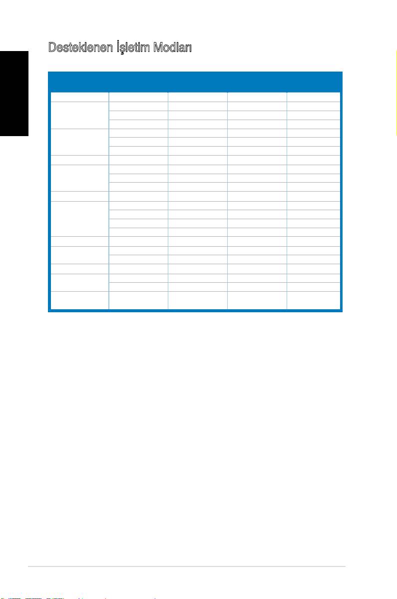 * Tabloda listelenmeyen modlar desteklenmeyebilir. Optimal çözünürlük için, yukarıdaki tabloda