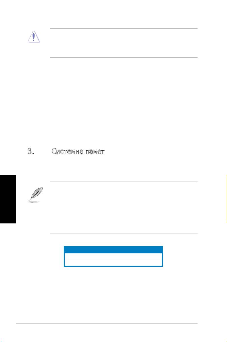 • Винаги инсталирайте DIMM модули с еднаква CAS задръжка. За оптимална