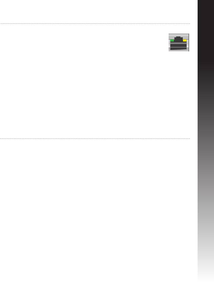 Gigabit connection. Green LED means 10/100Mb connection.