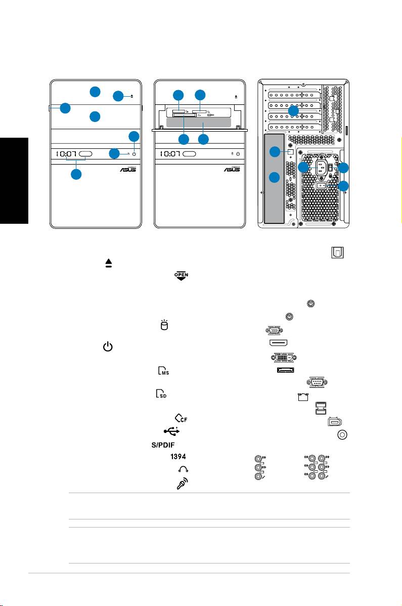 POZNÁMKA: *Sloty/porty na předním/zadním panelu a jejich umístění se mohou lišit v