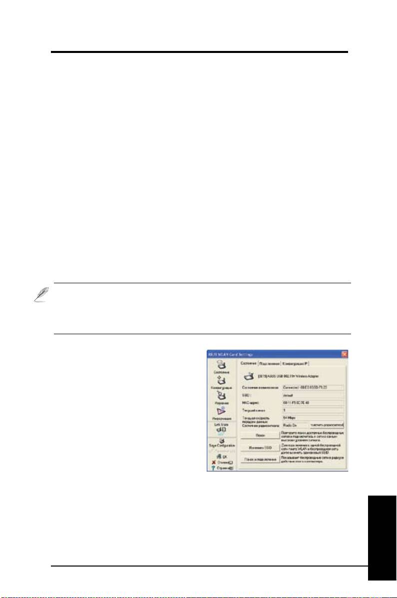 С помощью служебной программы ASUS WLAN установите соединение с существующей