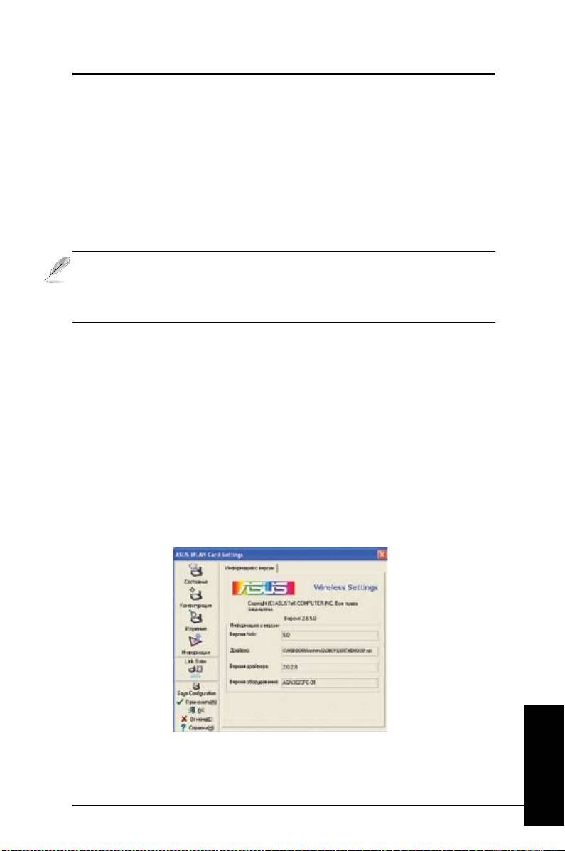 WLANПоле информации о версии программы включает авторское право и версию