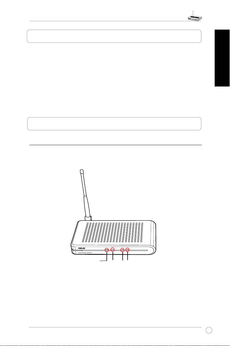 TheASUSWL-320gEAccessPointincludesLEDindicatorswhichshowthesystem,LAN,