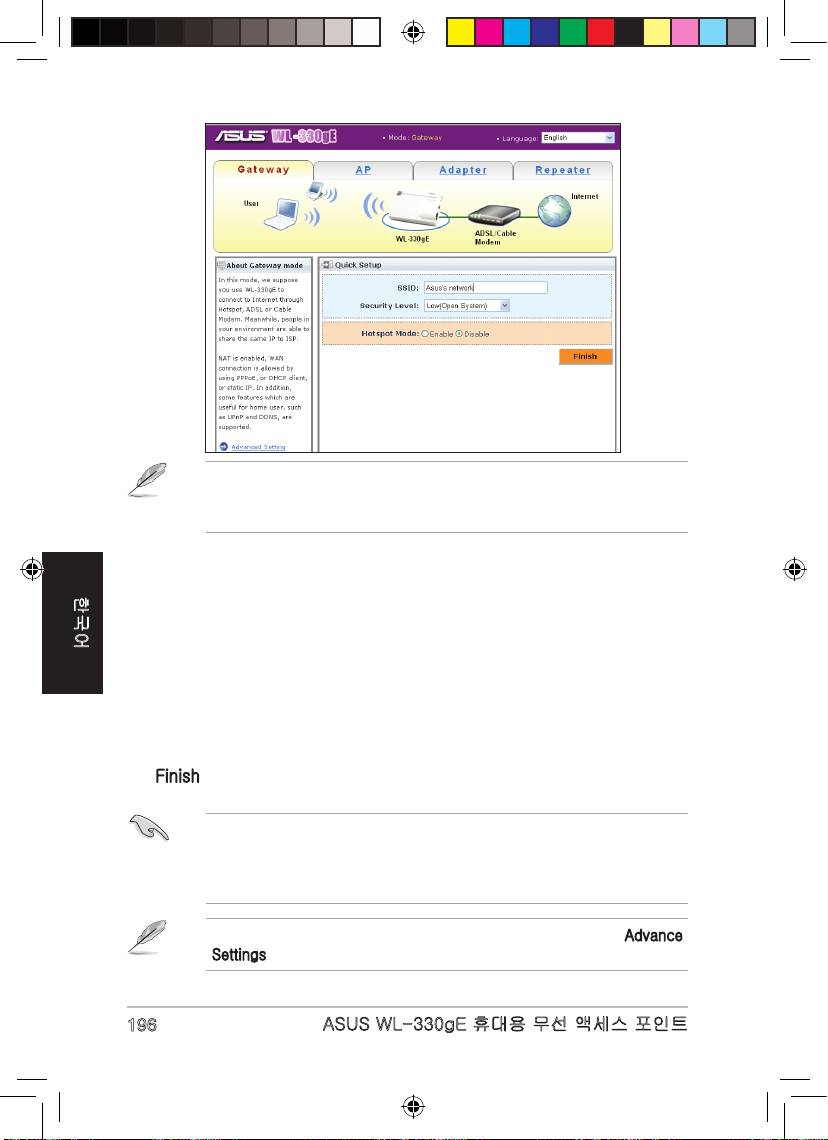 ASUS WL-330gE에서 네 가지 모드를 지원합니다: Router/Gateway (라우