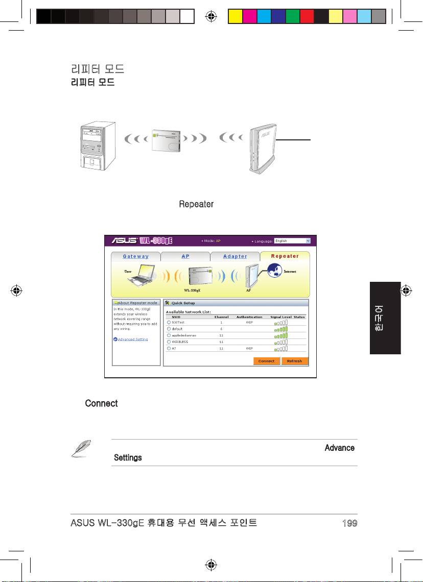 리피터 모드에서 ASUS WL-330gE의 구성: