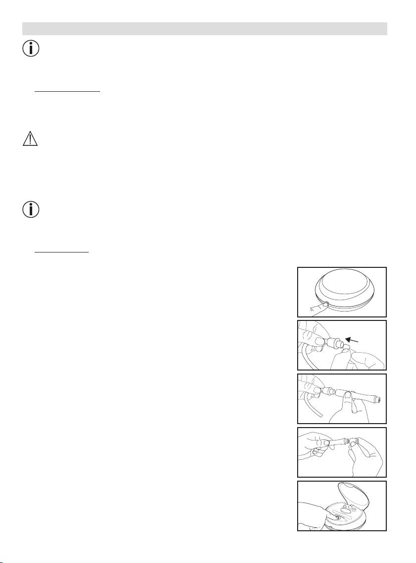 3. Włożyć filtr jednorazowy do końcówki węża.