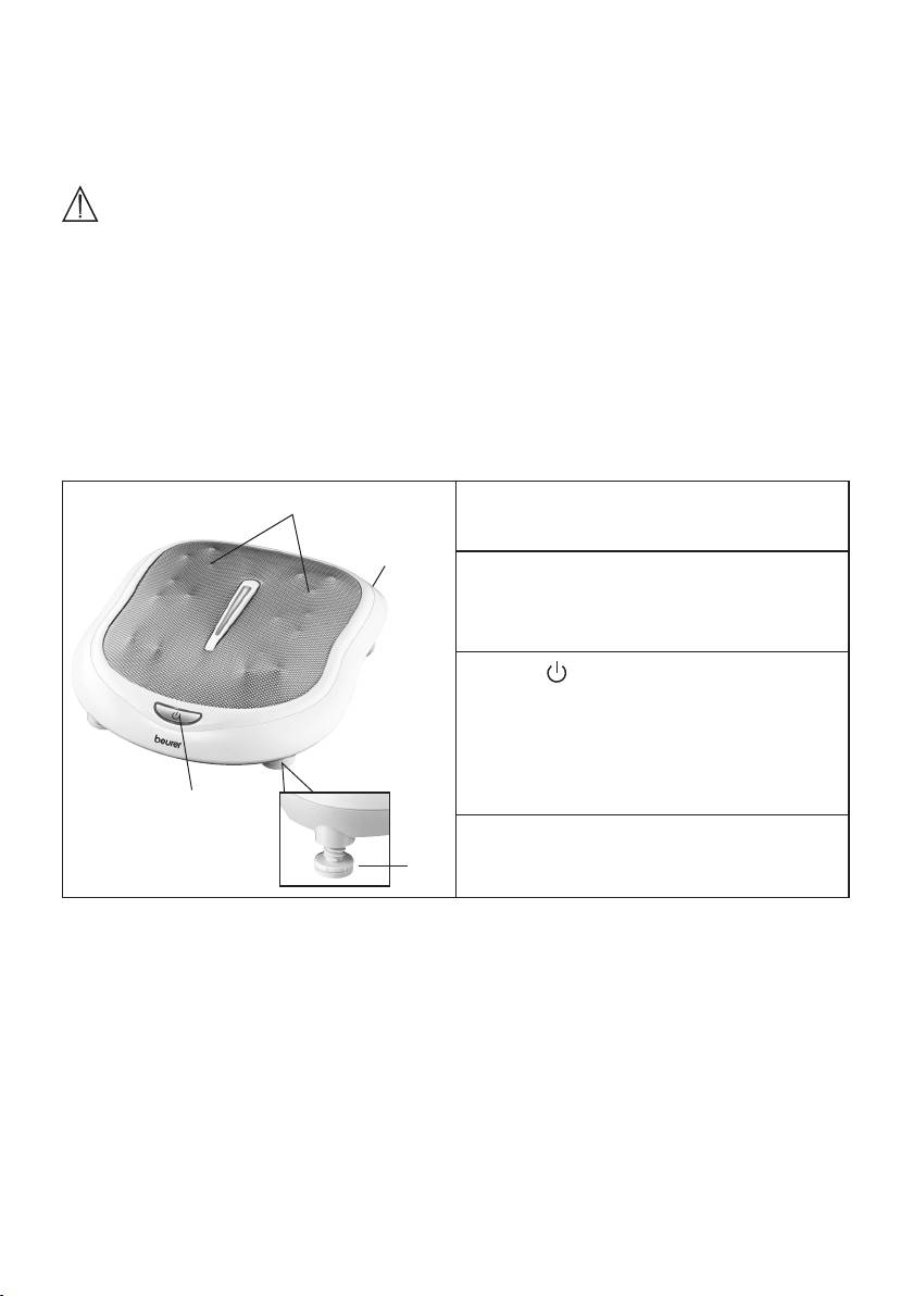 - Fire hazard Handling 7. Appliance description Shiatsu foot massager 8. Start-up