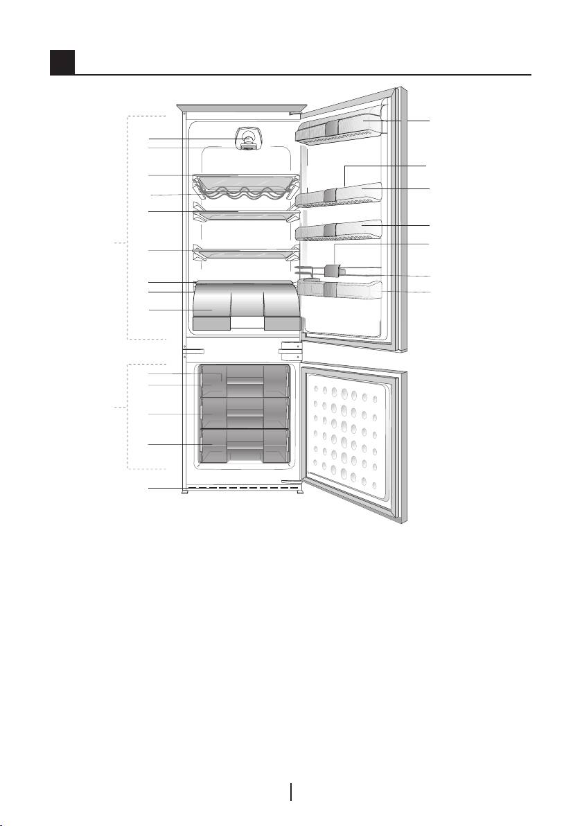 • Ventilatorer bruges til at køle køleskabet. Det er normalt og ikke en fejl.