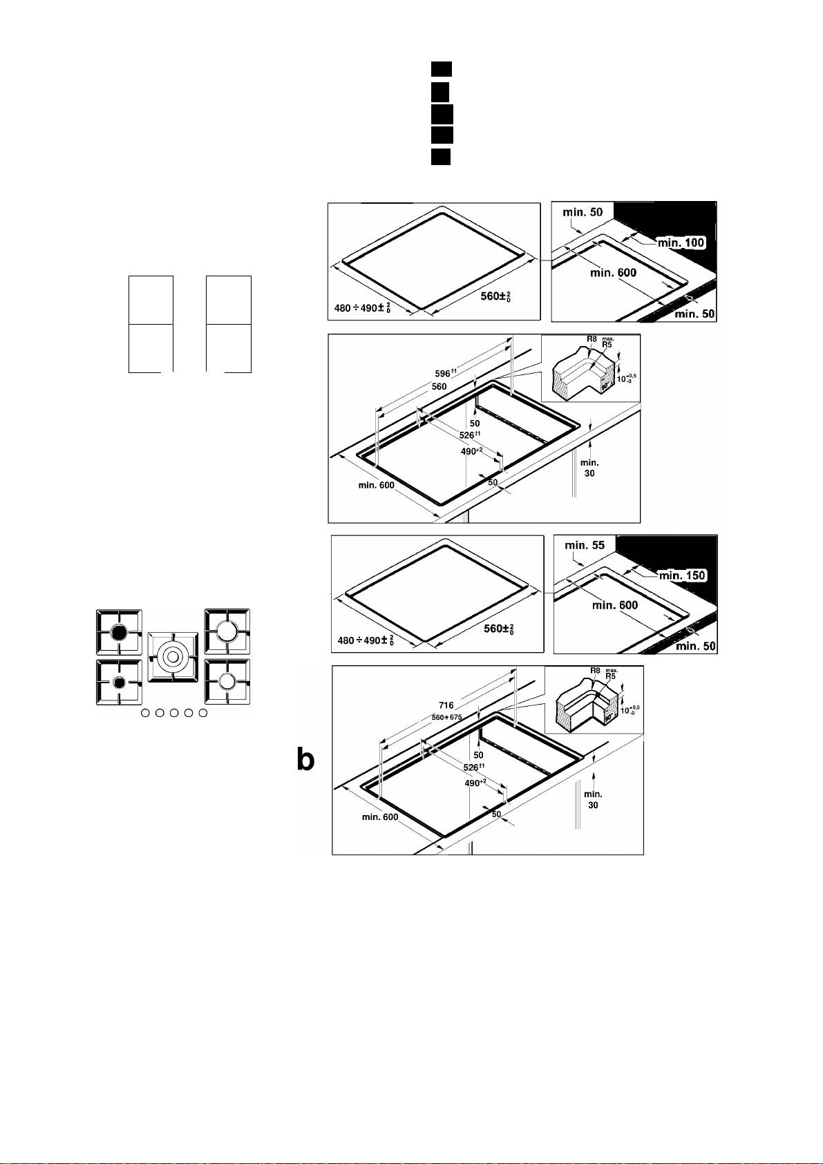 bündig (b). Fürden bündigen Einbau: