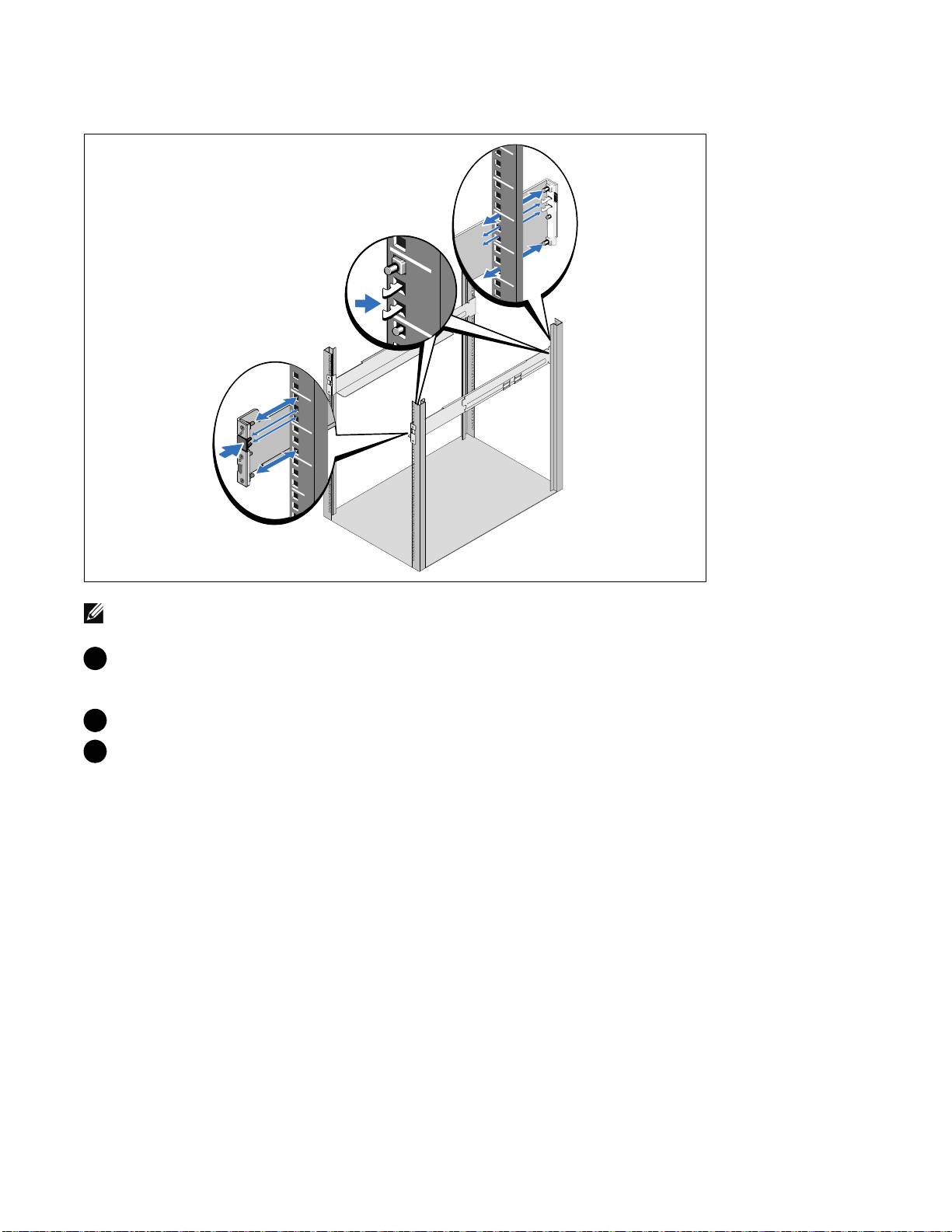 注意: 方孔机架和无螺纹的圆孔机架的操作说明相同。 导轨适用于这两种机架。