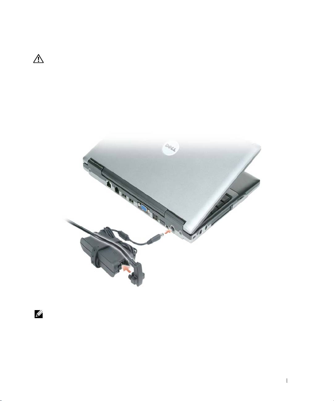 ENSURE THAT THE AC ADAPTER IS FIRMLY CONNECTED TO THE COMPUTER AND TO THE ELECTRICAL OUTLET.