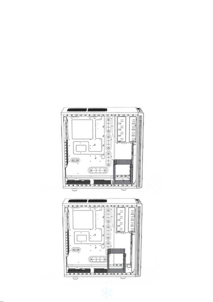 The lower HDD cage can be repositioned to provide more space in the front of the case.