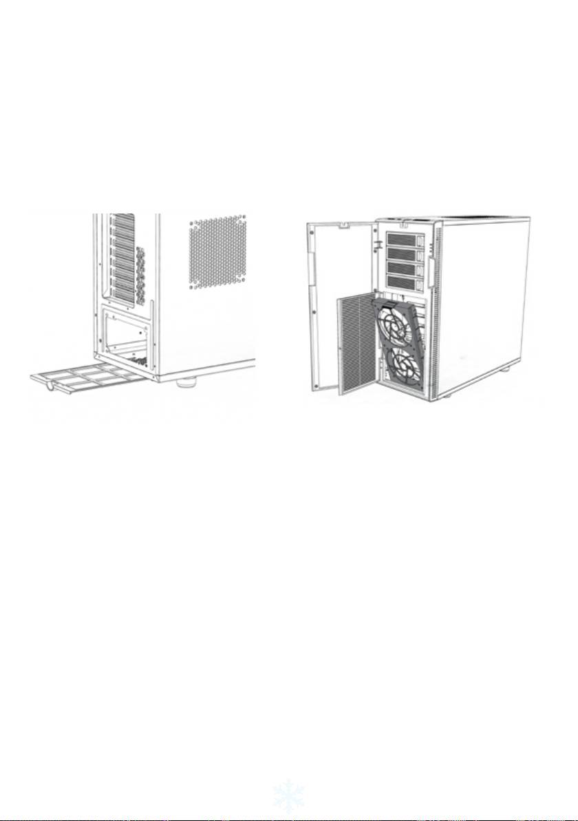 Den övre hårddiskburen kan roteras eller helt tas bort för att öka luftödet från de främre