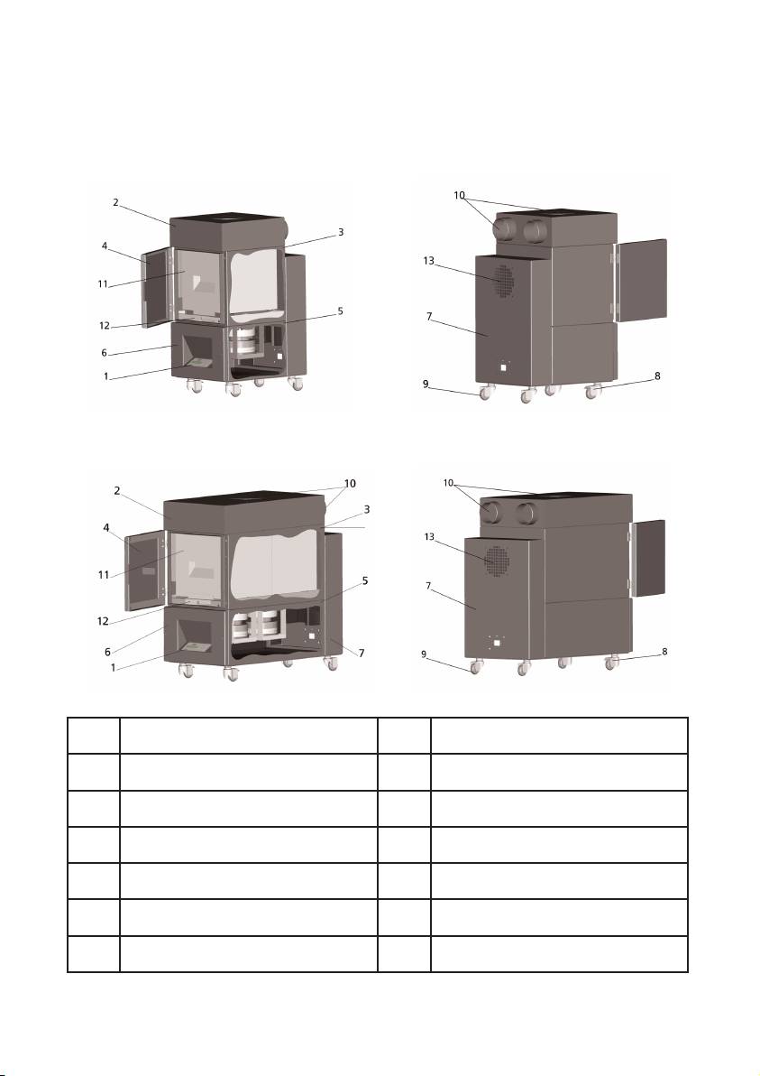 A szűrőelem alatt található ventillátor kiszívja a szűrőelemek által megkötött illékony szerves vegyü-