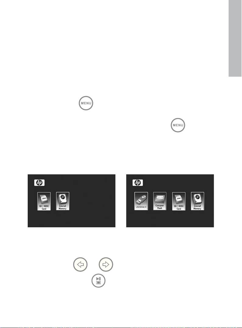 HP df770 Digital Picture Frame: Выбор запоминающего устройства