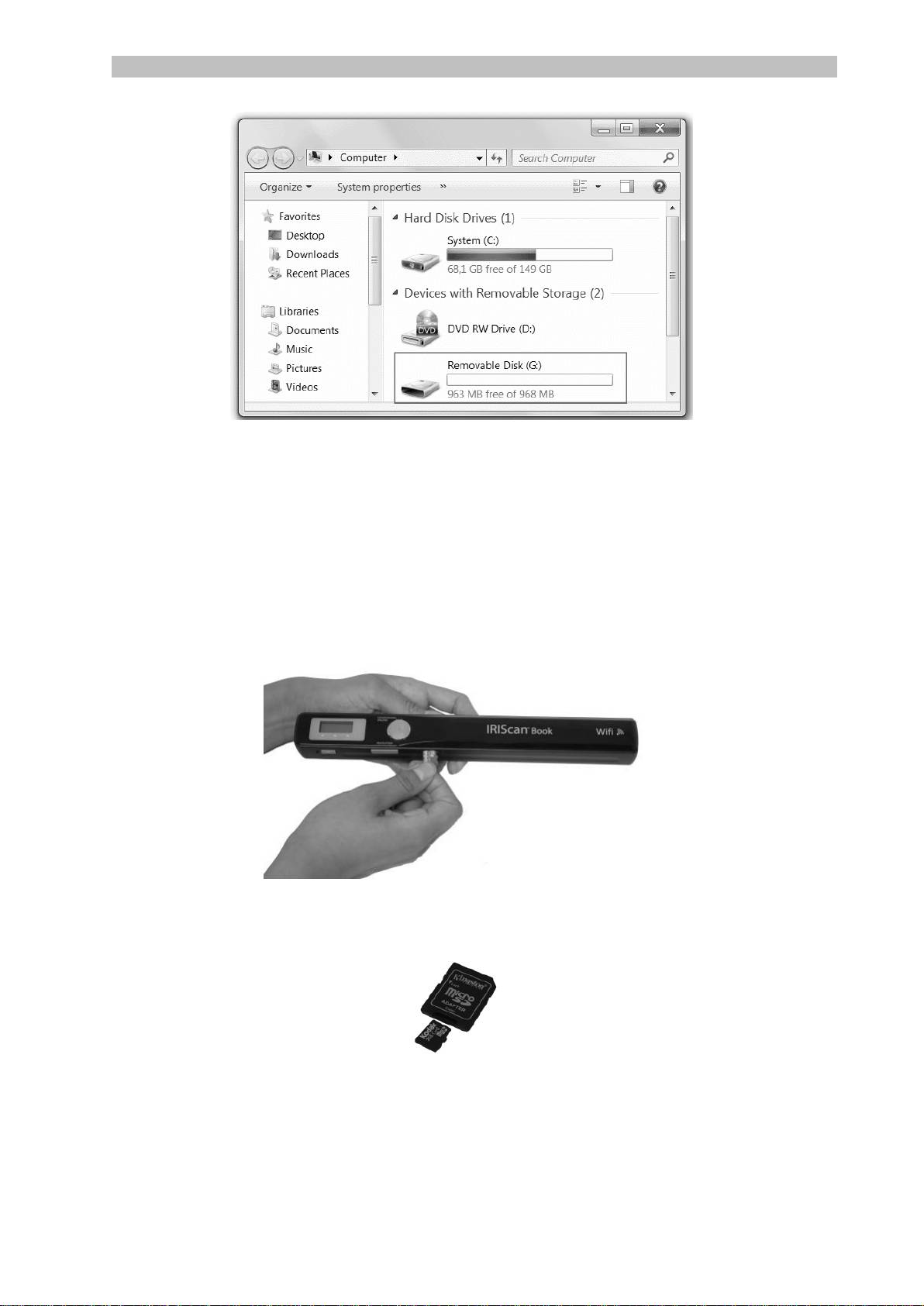 microSD-kaart gebruikt worden. Zie hoofdstuk 8. Scannen met IRIScan™ Direct