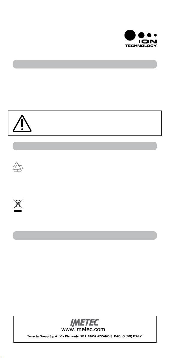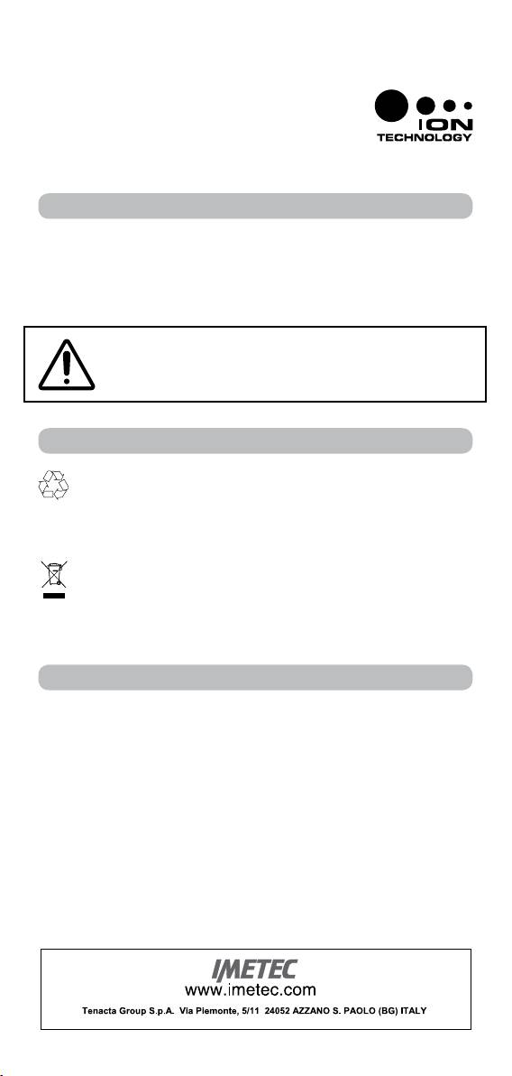 Spoštovani kupec, IMETEC se vam zahvaljuje za nakup tega