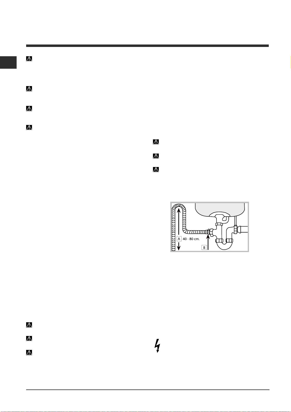 The outlet hose must be at a height ranging from 40 to 80