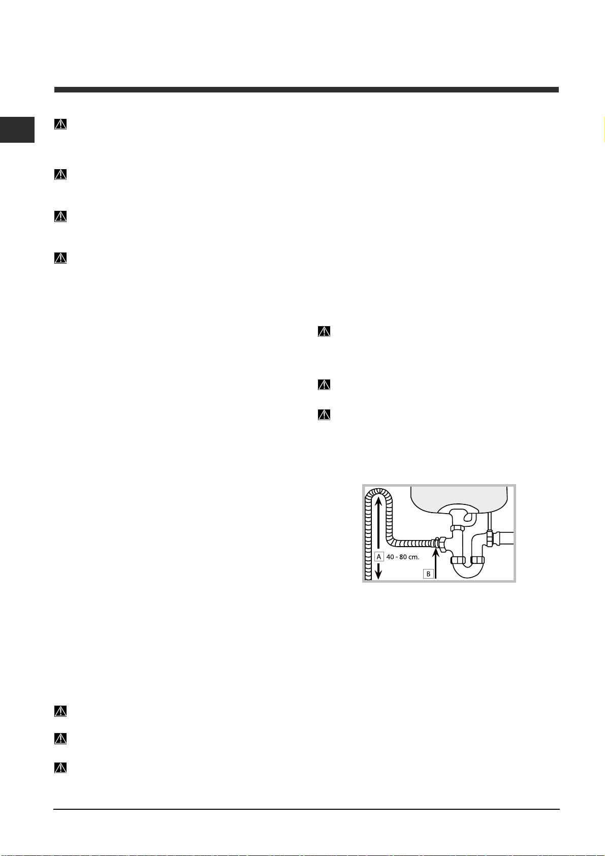 Сливной шланг должен быть расположен на высоте от 40 до