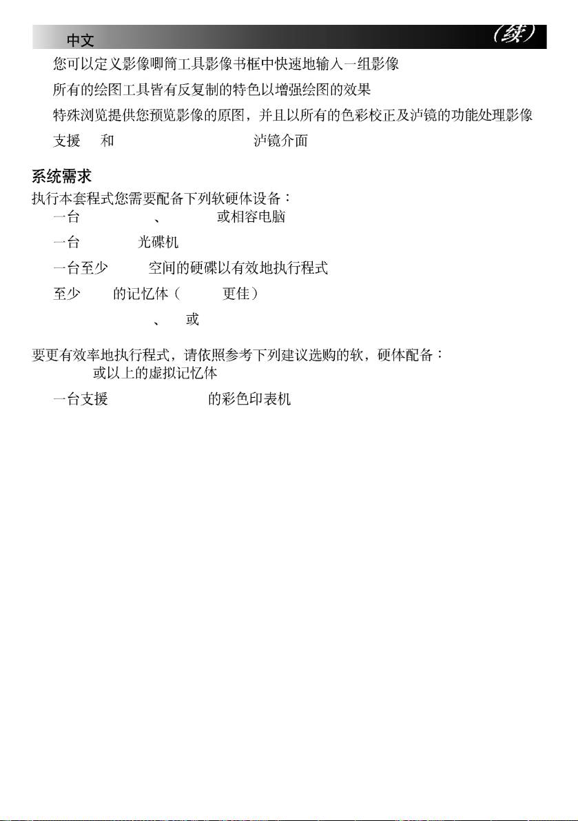 ● 16- og 32- bit Adobe™ plug-in filter interface støtte.