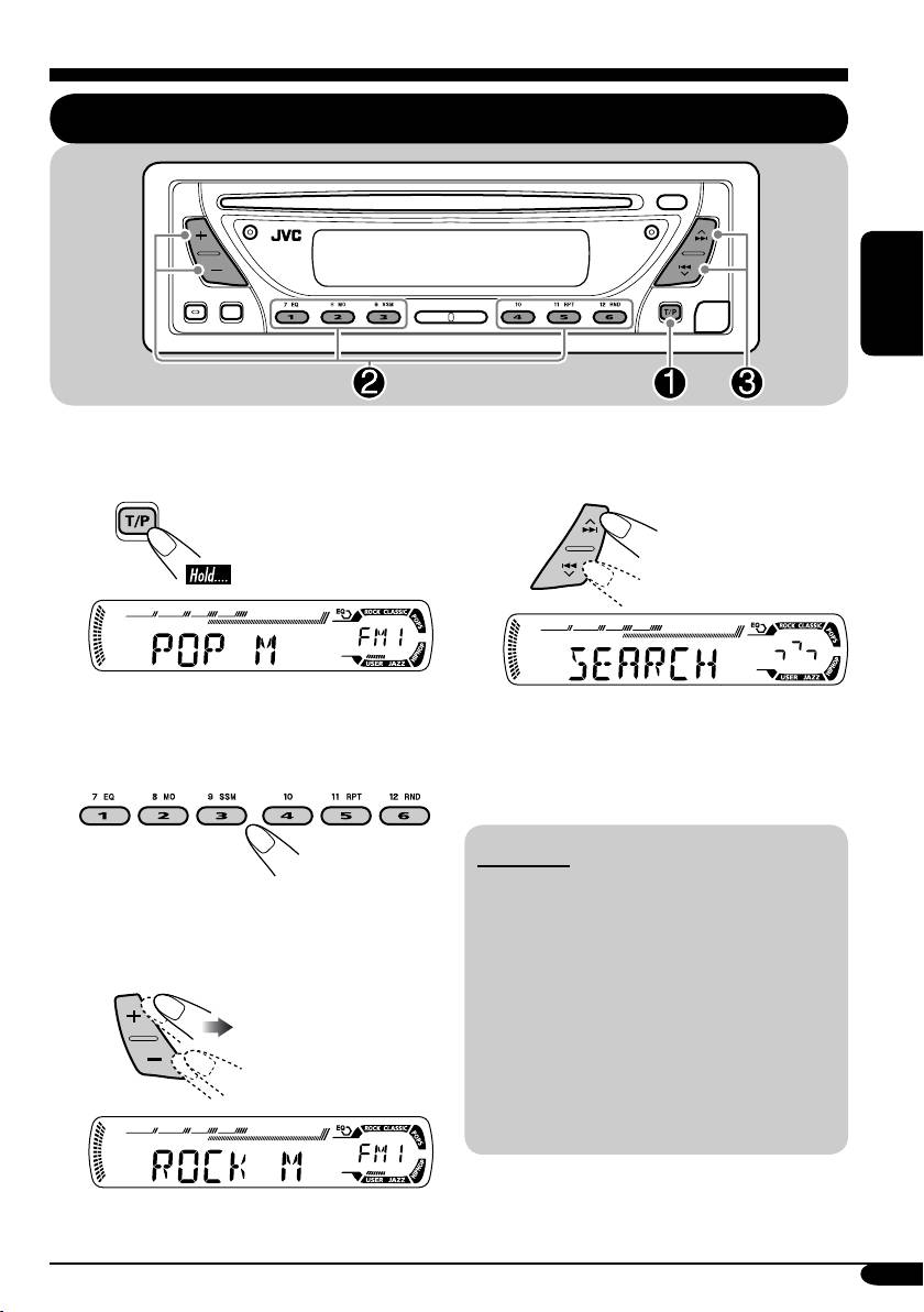 JVC KD-DB711: ! Beginnen Sie die Suche nach