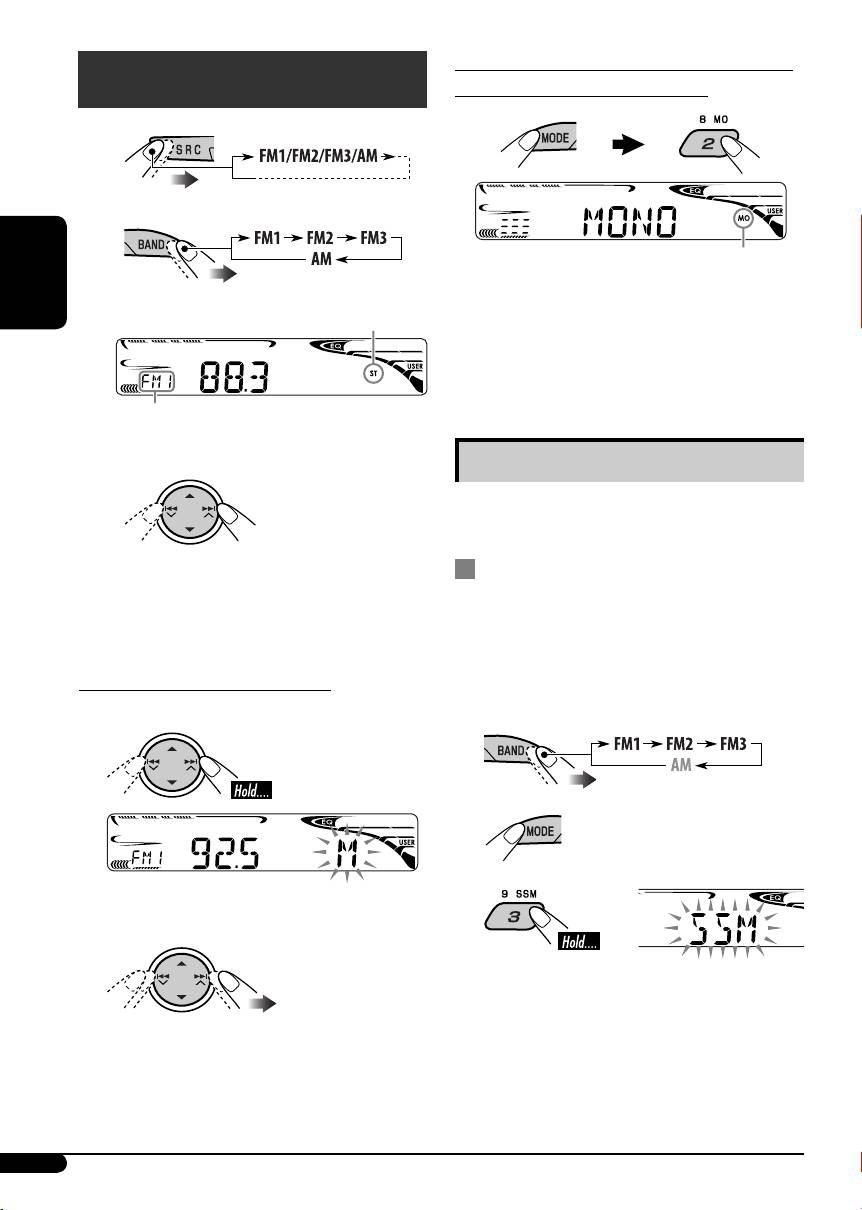 JVC KD-G421: Bedienung des Tuners