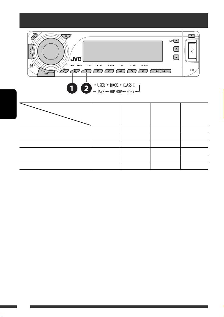 JVC KD-G731: Выбор запрограммированного режима звучания