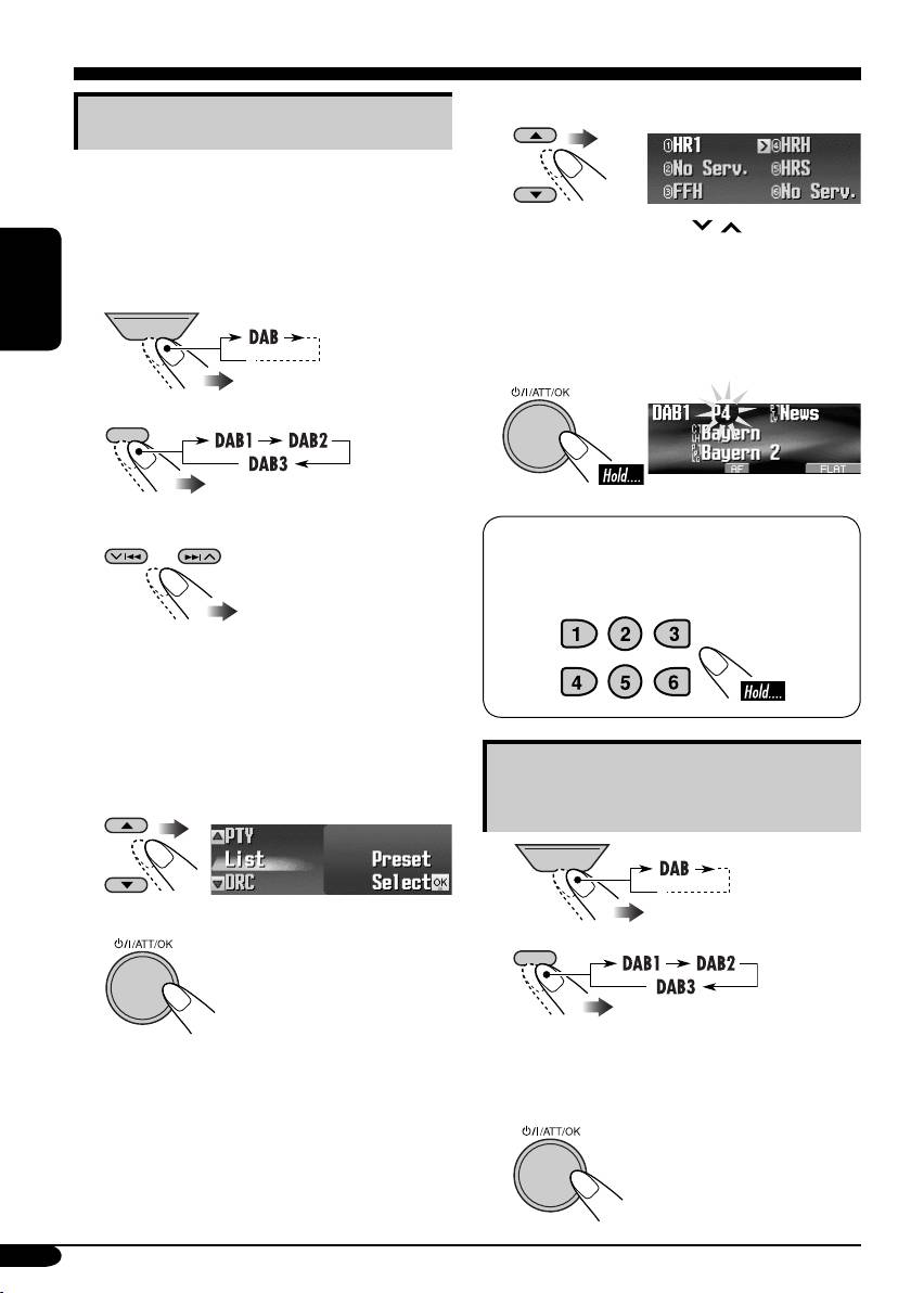 • Для DAB: cмена служб.