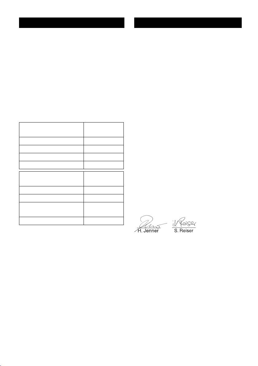 Oplyste værdier ifølge EN 60335-2-69