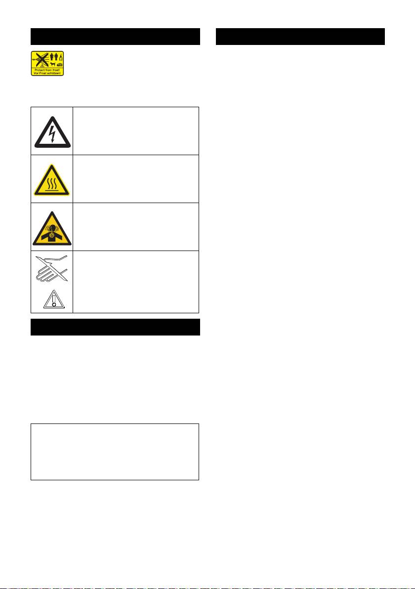 Arbeidstrykk vann (med standarddyse) MPa (bar) 3-20 (30-200) 3-20 (30-200)