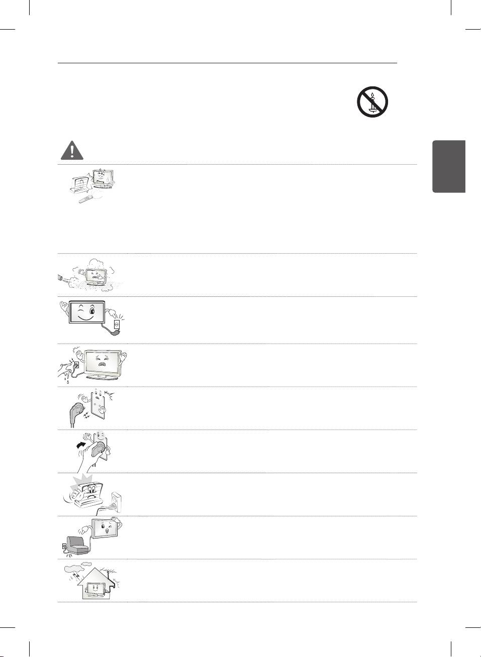 Ne permetezzen folyadékot a felületre. A TV belsejébe kerülő víz tüzet, áramütést vagy meghibásodást