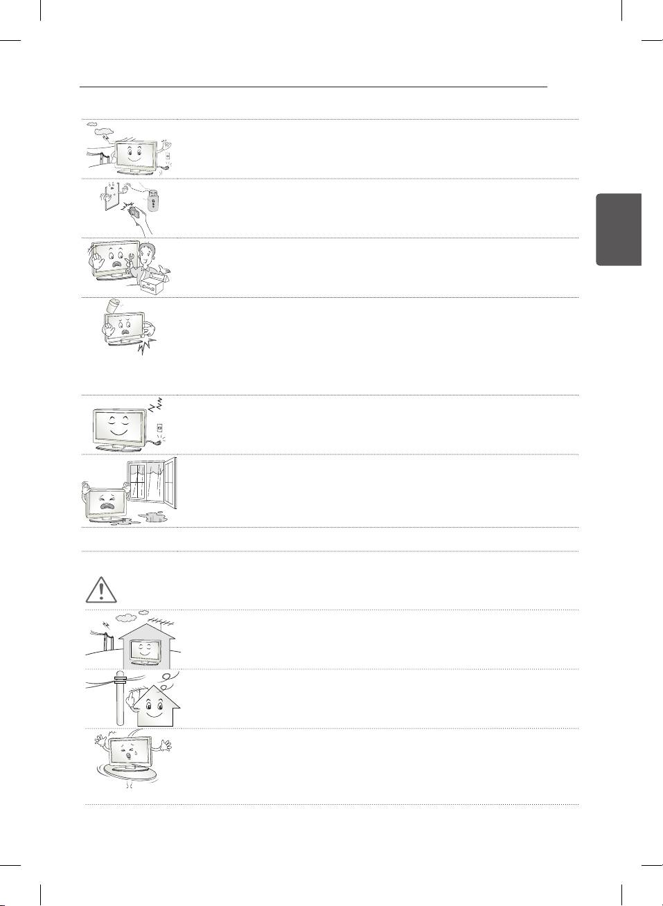 Ha a TV-t huzamosabb ideig nem használja, húzza ki a tápkábelt a fali aljzatból a lehetséges villámlás vagy
