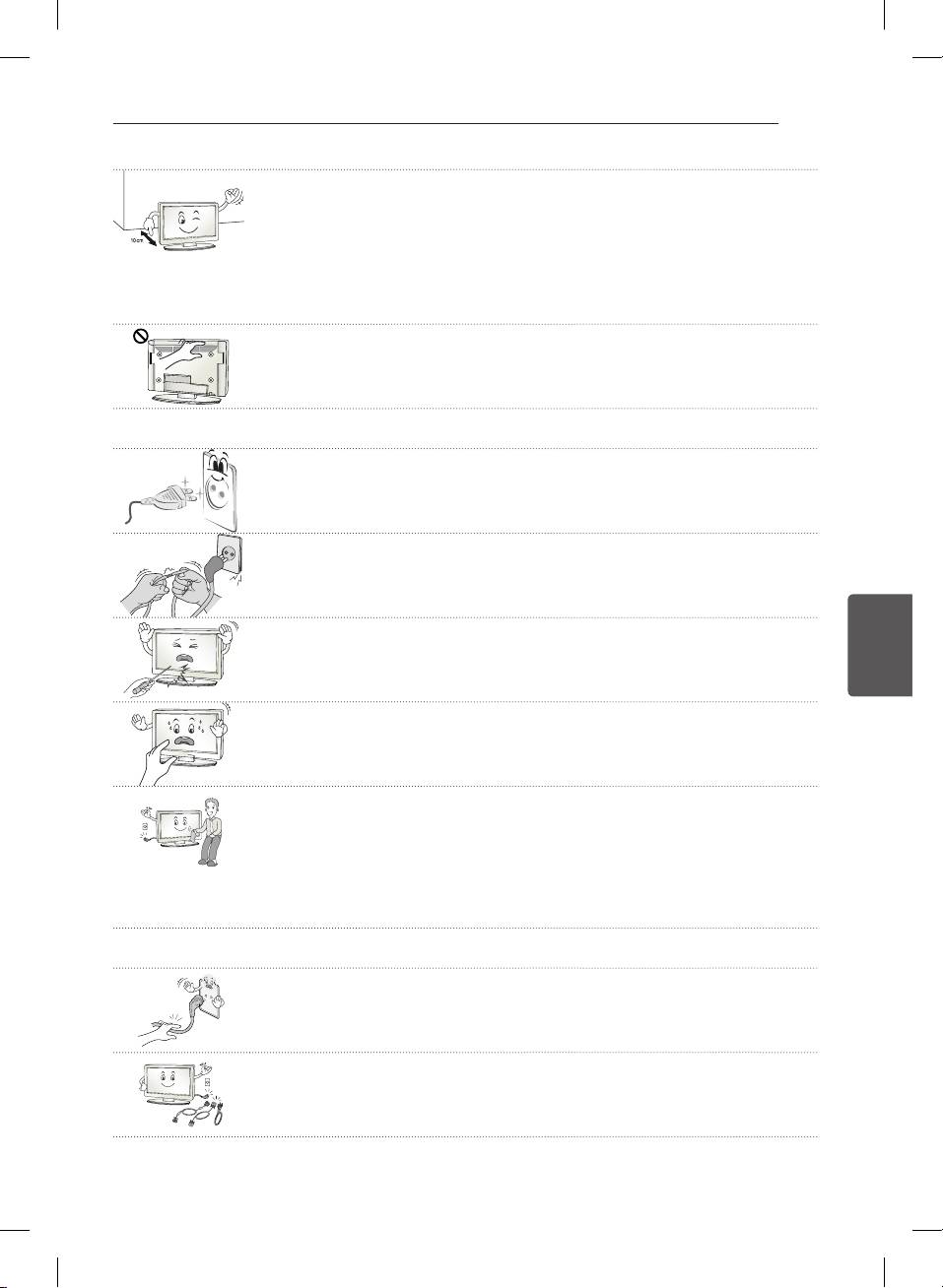 Pri montáži na stenu televízor nevešajte za napájací alebo signálny kábel zo zadnej