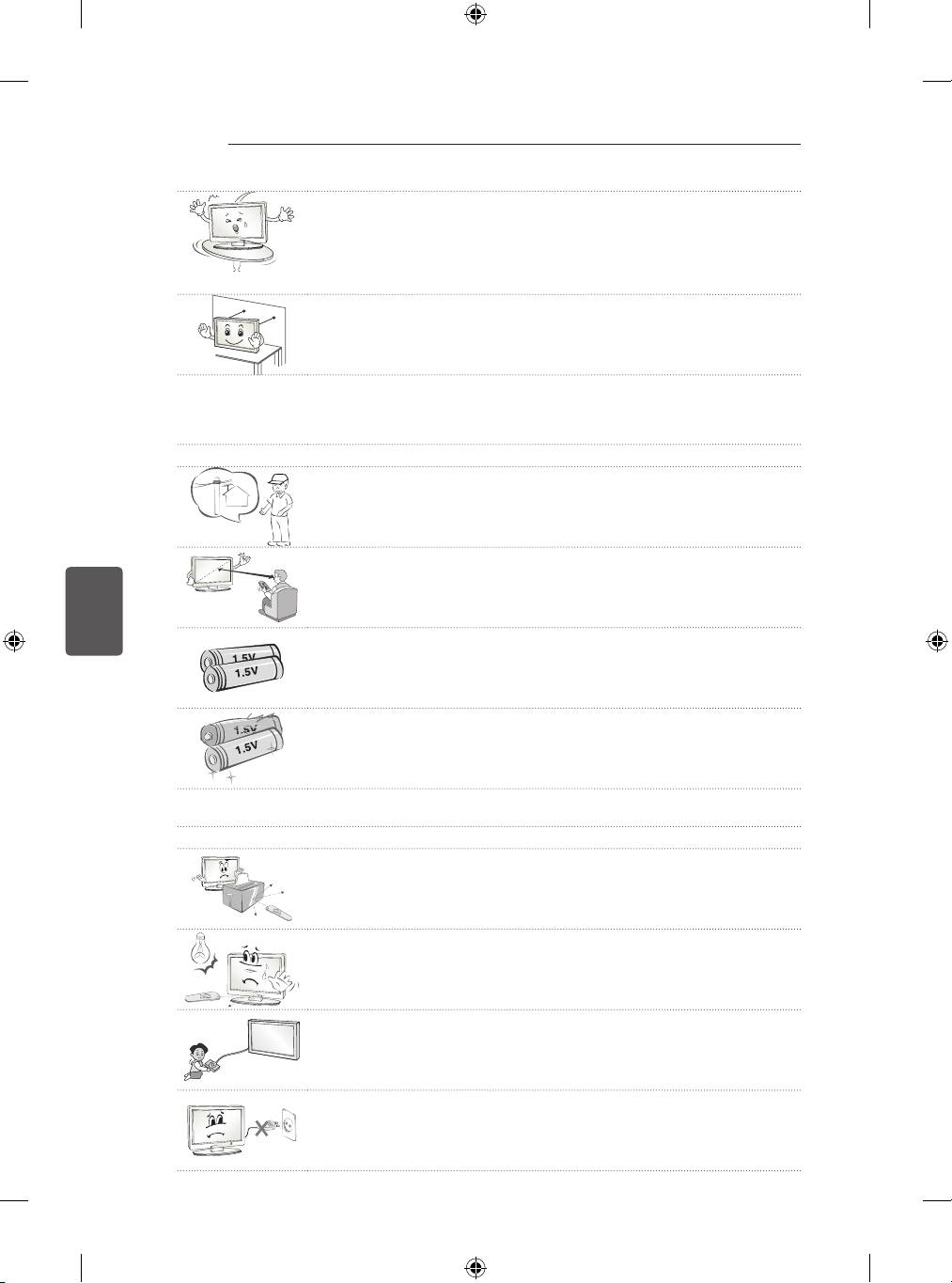 Не поставувајте ги телевизорот и далечинскиот управувач во следните