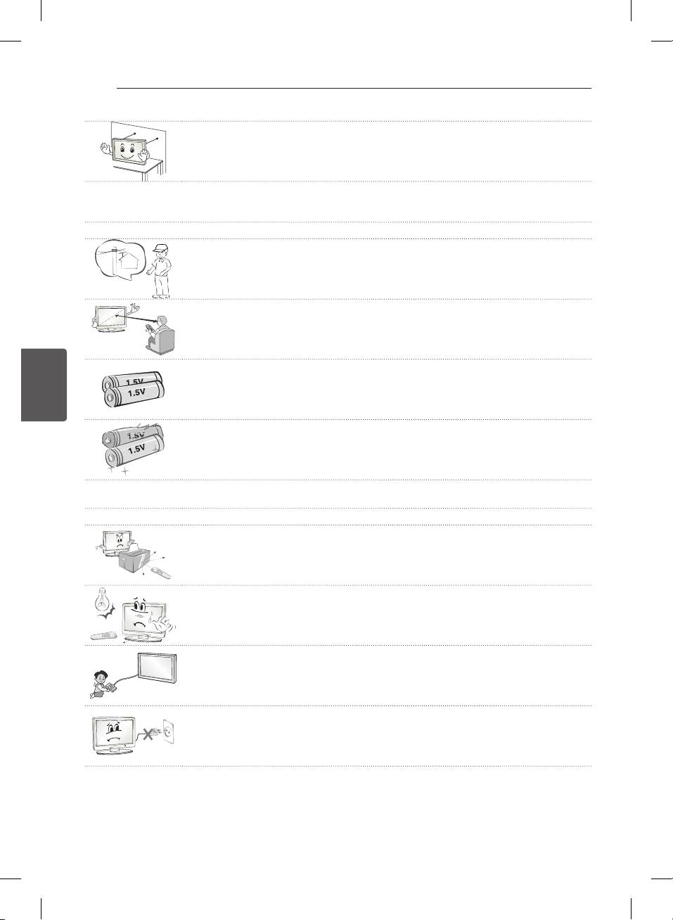Mos e vendosni TV-në dhe telekomandën në mjediset si më poshtë: