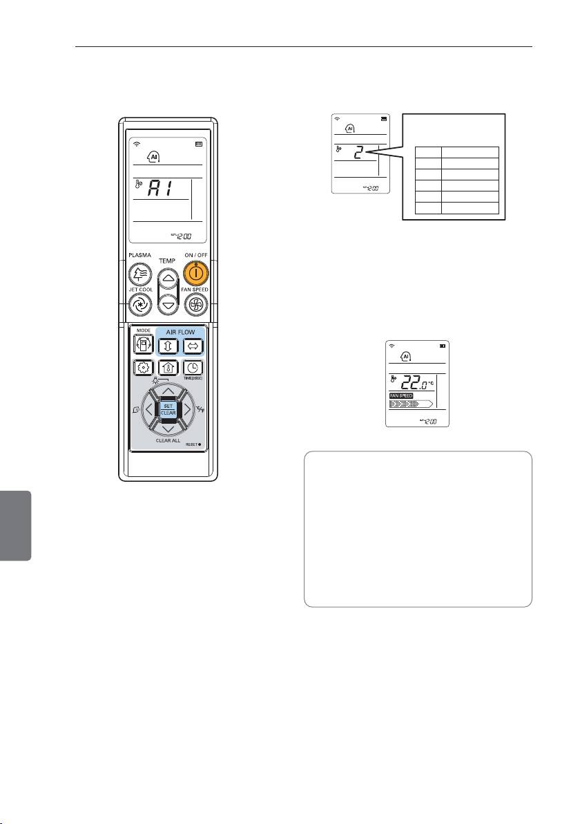 para baixo. Pressione novamente o botão de fluxo de ar para cima/baixo para devinir a di-
