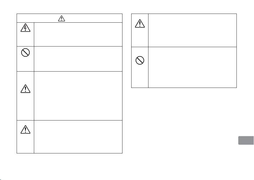 在图示中或图示附近标有具体的注意内容(左图之例为当心触电)。