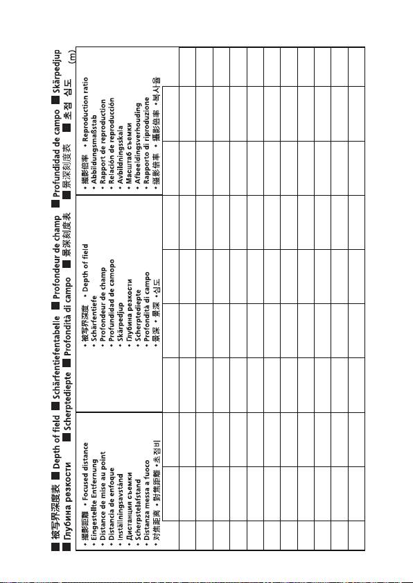Focused distance Depth of field Reproduction ratio