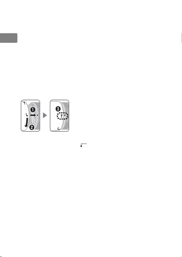 la marca de montaje del parasol (●) en el objetivo