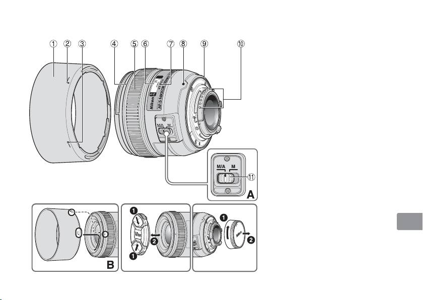 • 为了方便安装或拆下遮光罩,请握住底部(镜